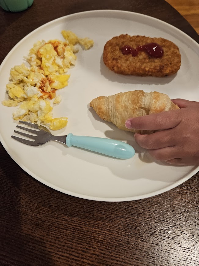 Breakfast – 08:00am – Egg, Croissant, and Hashbrown