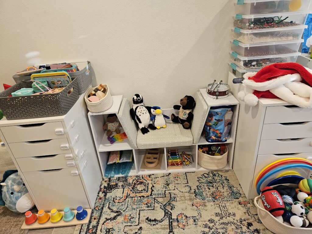 This week all of the toys that will be out are just the toys that Aryi got at Christmas. These toys will stay out for the next two weeks when we start preschool again.