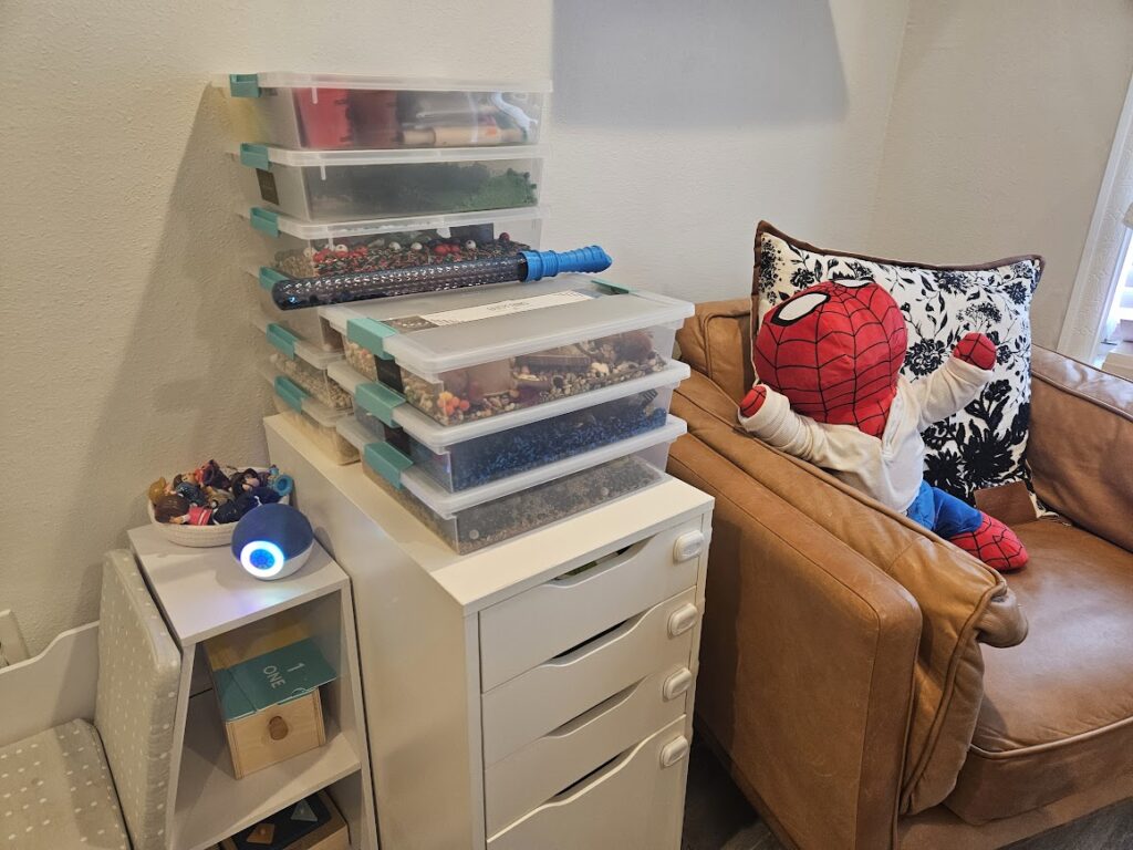 Space Bin – This was new from Christmas. This will be a good introduction into space for him. I will leave it out indefinitely.