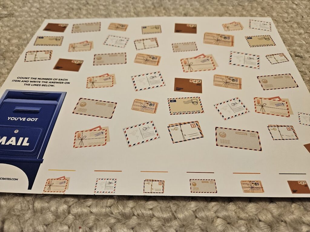 They always pick the coolest books for their boxes. Every book was a hit with me. Aryi loved all of them except for A Bad Case of the Stripes. We love the Mailbox. Aryi is super into puzzles right now and since we are learning letters, this is right up his alley. These letters are also great. I love that they can be used with playdough. I also love that they use all of the books to create crafts. It is like they have created lessons. We will read the Not a Box book and then make a not a box box.