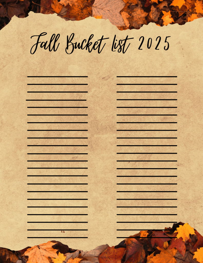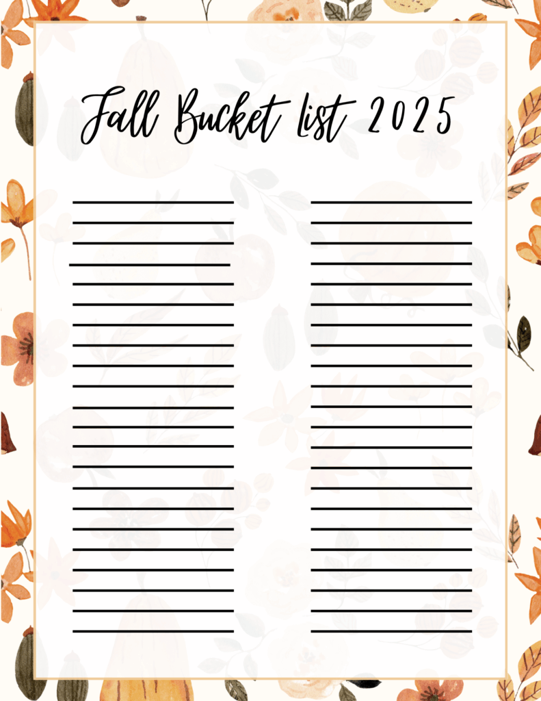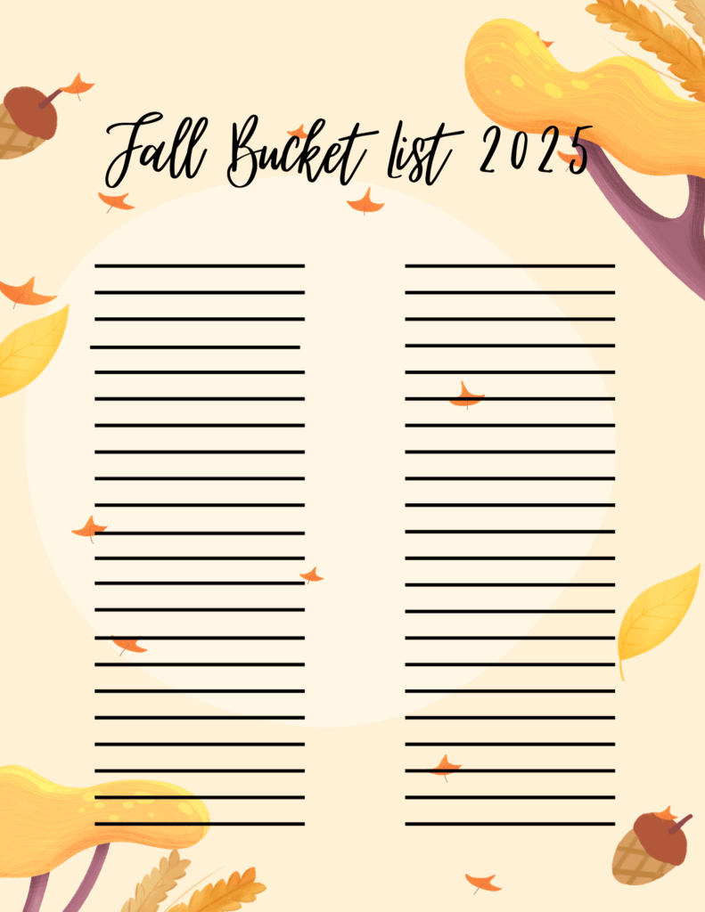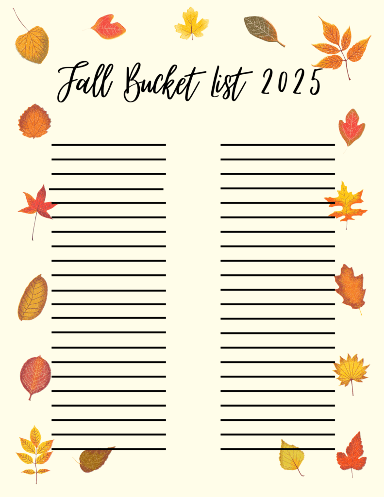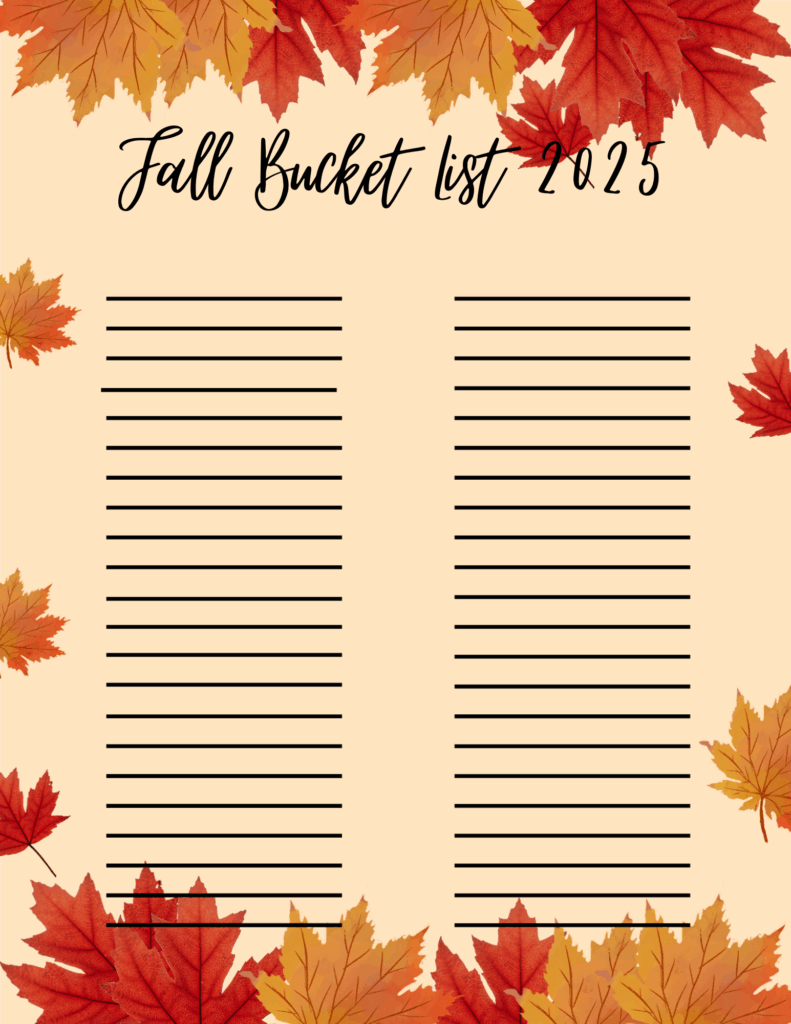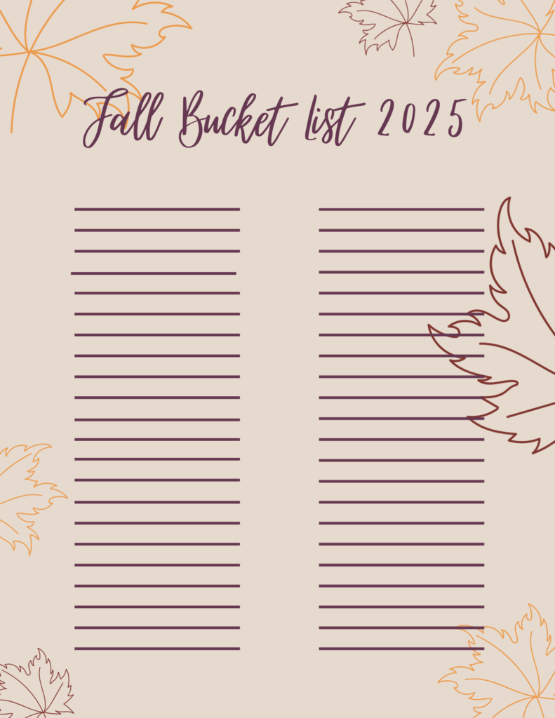 Fall Bucket List 2025 Leave a Comment / Everything Mom & Baby, Printables / By Myranda.Thapa Fall Bucket and Gratitude List 2025 September 2, 2025 Click the picture below to print.