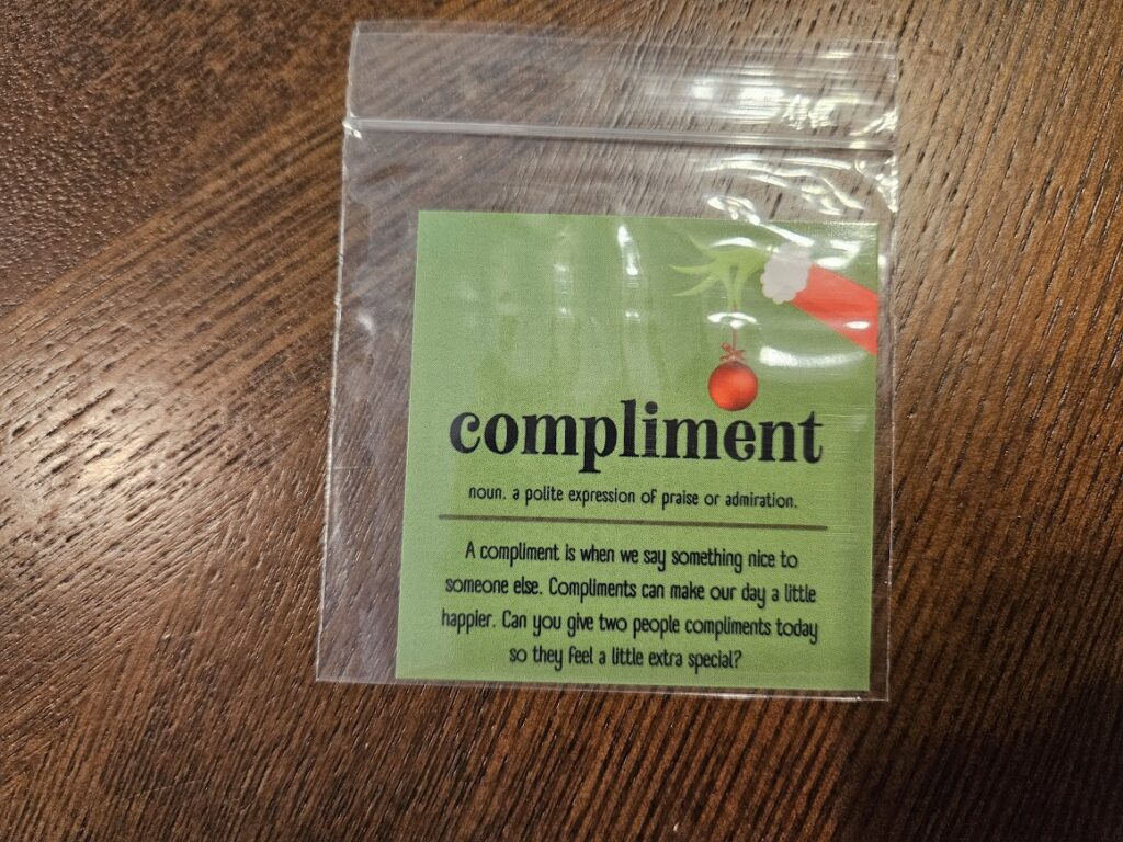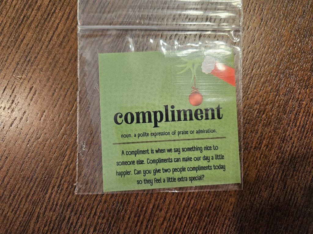 Complement – this makes sense, this is a card I would use when I don’t have time to act on what the elf leaves out that day. This is a fine repeat.