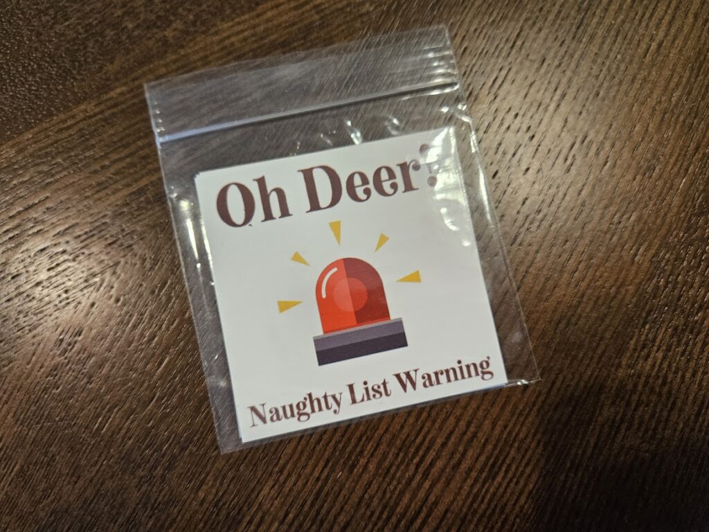 Naughty List – Personally I don’t think I would ever use this. My mom traumatized us with coal on top of our presents for just being kids when we were super young. We thought Santa hated us. I understand that for other people this might be useful.