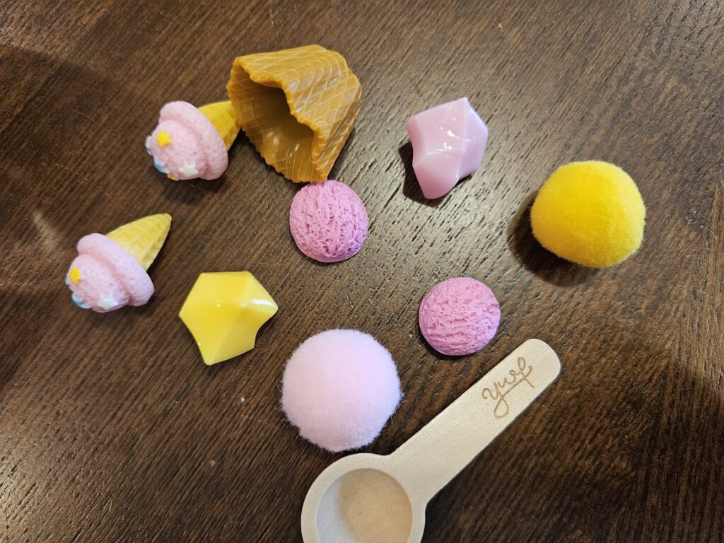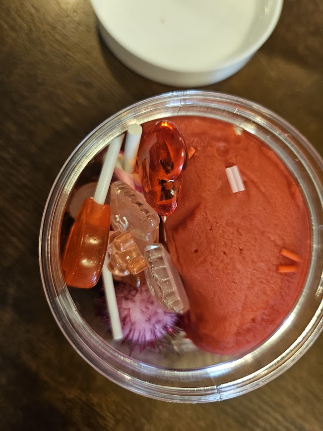I decided to grab these dough jars because I didn’t think our bin was festive enough. These are perfect for our Valentine’s Day basket and sensory bin.