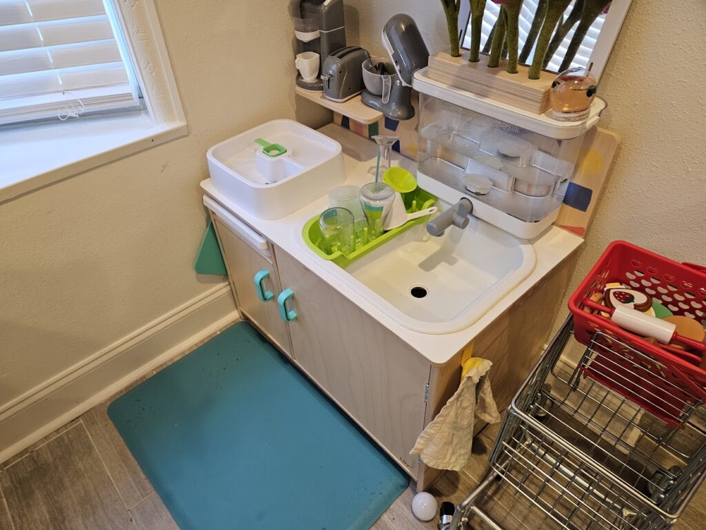 The Real Life Play Kitchen – This stays out always for independent play