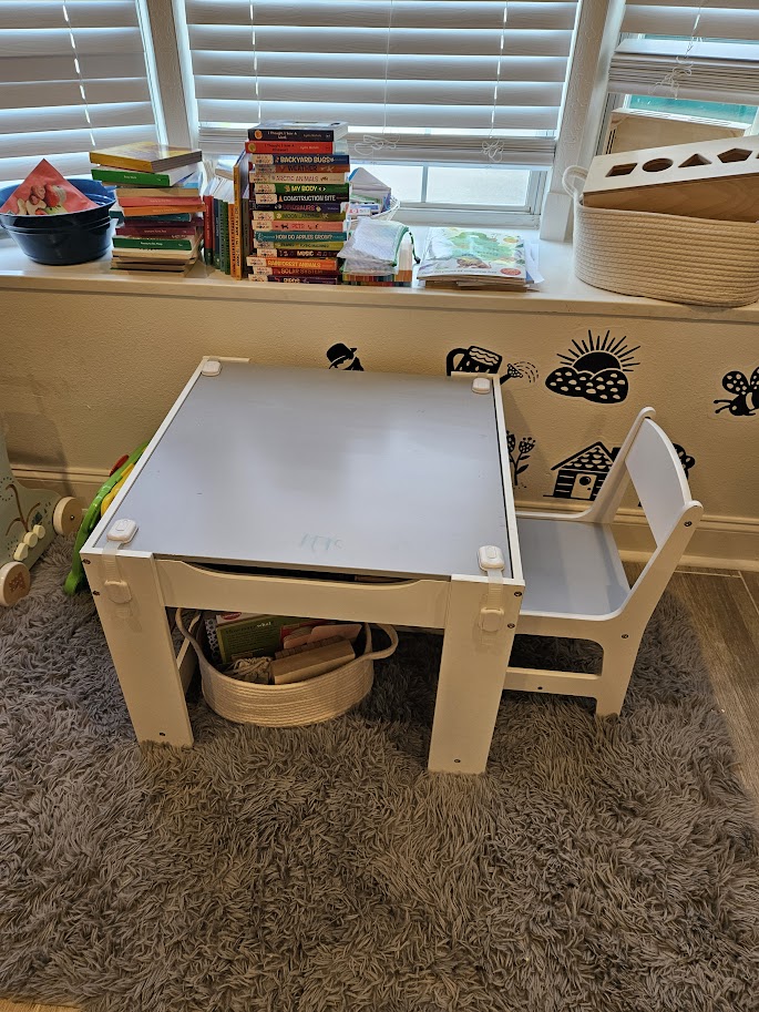 Duplo Blocks (gift but you can find it on Amazon) – Always out and available.